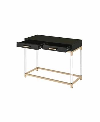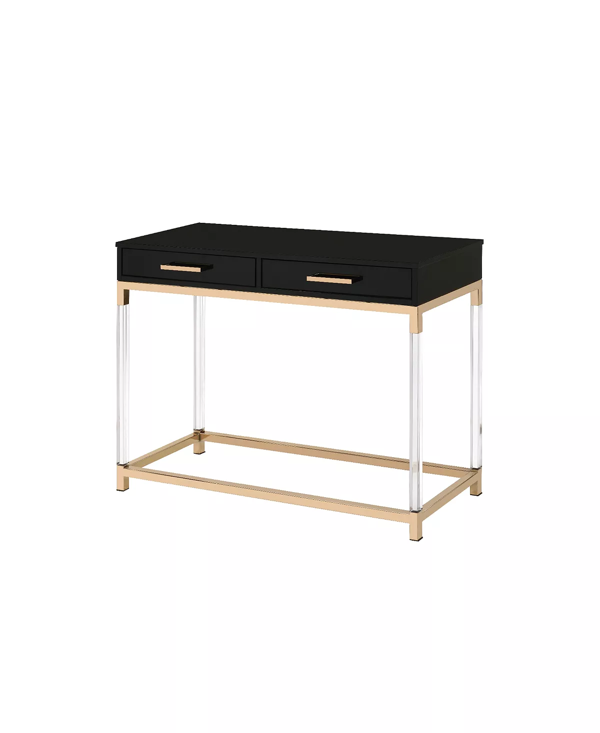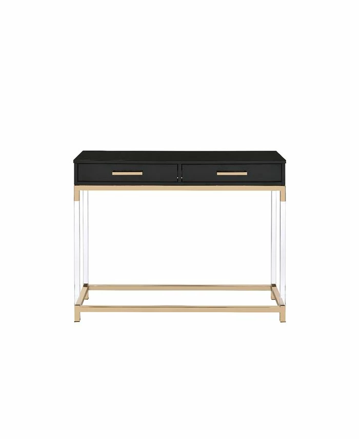 Match your seating ensemble with this Adiel console table that lend a modern flair to your living room. The beautiful metal frame in gold-tone finish adds a touch of glam to this contemporary piece, with clear acrylic legs that elegantly frame the design.