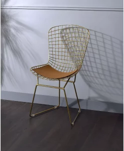 Mix a taste of contemporary flair into your dining space with this achellia side chair. It is showcasing whiskey faux leather seat cushion with a gold-tone metal frame. This design lends style with its curved seat and clean lines. It offers an inviting and eye-catching feel.