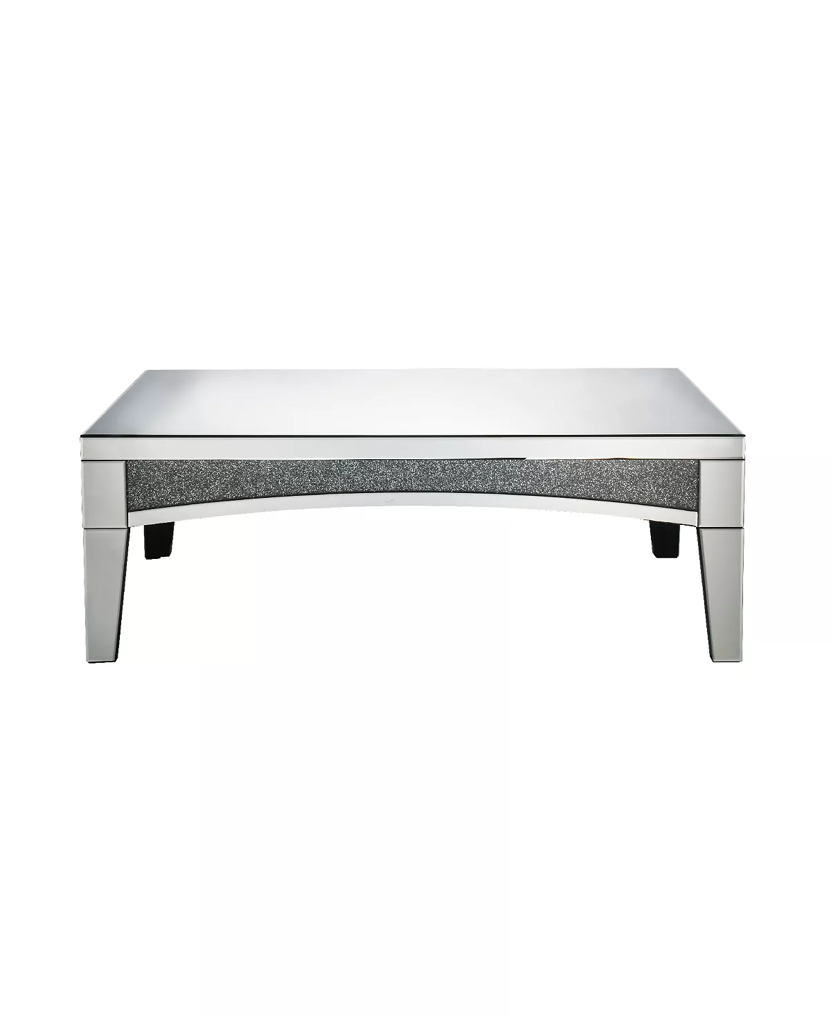 Brighten up your empty living room with the Nowles occasional table. This table offers a mirrored top and arched apron with faux stone inlay. A glam display table that naturally attracts the eye.