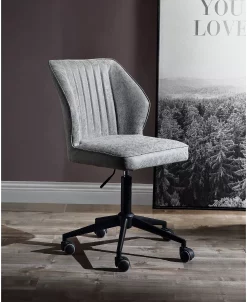 This pakuna office chair is a wonderful addition to any office. Featuring plush seating an armless, open seat, along with a stylish lightly channel tufted seat back, this chair will become the most comfortable chair in your home or office. The chair features a scrolled backrest with wing sides.