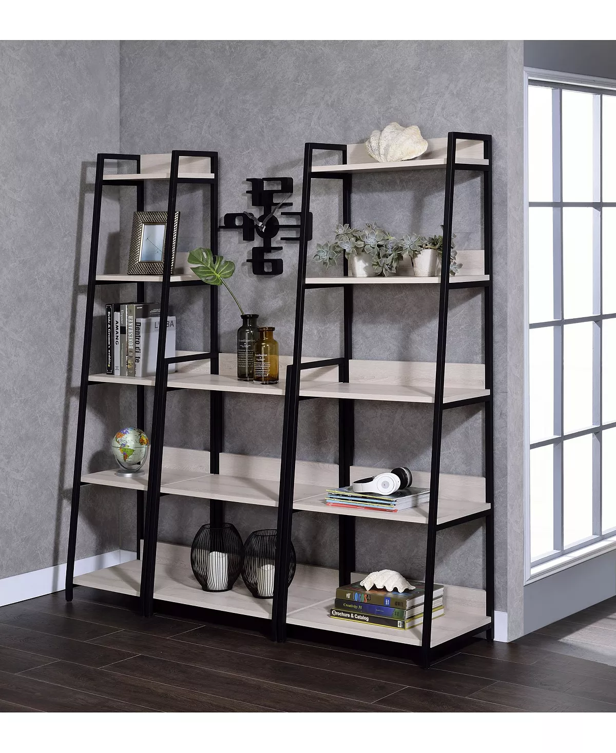 - Rectangular leaning-ladder bookshelf