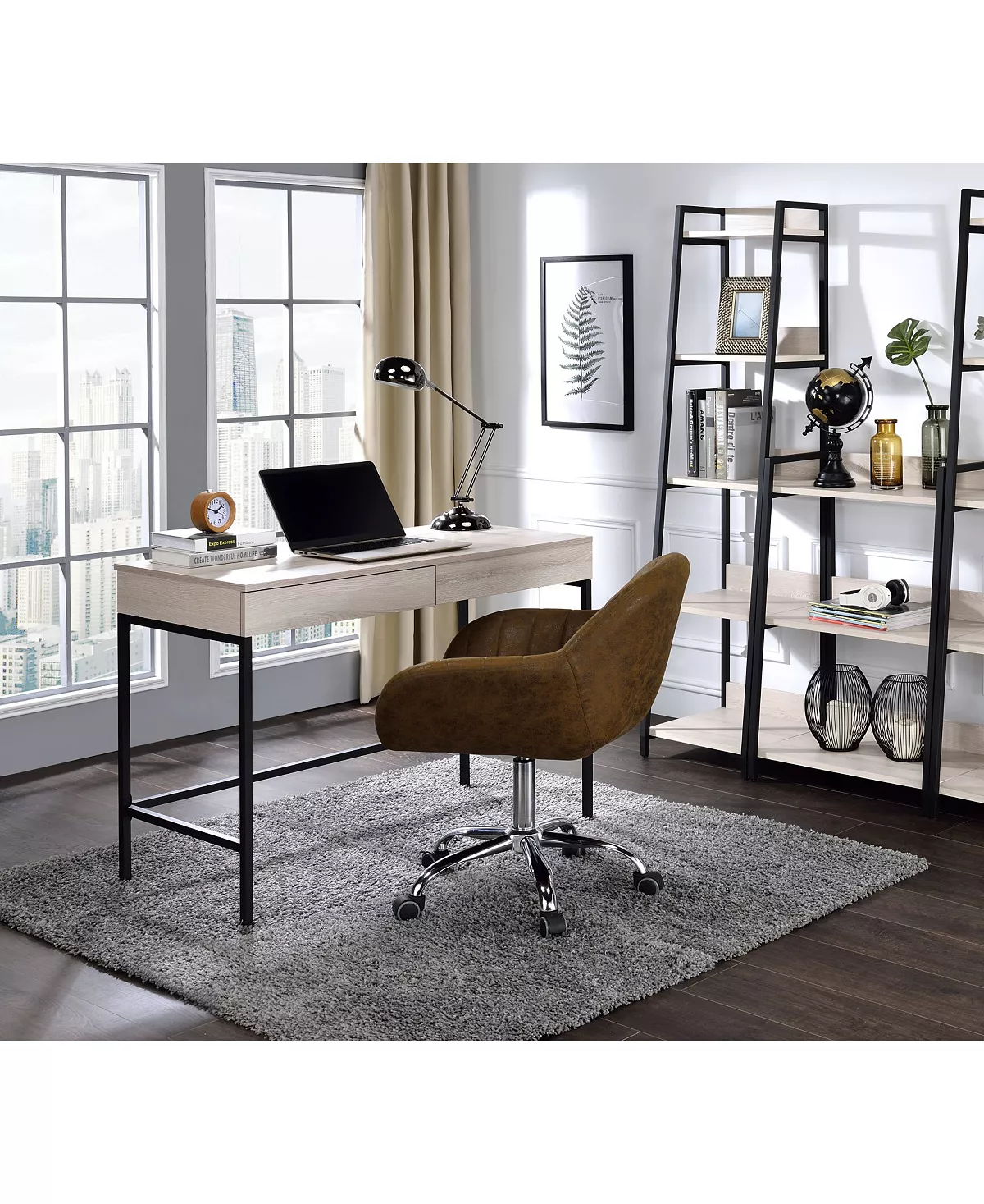 Expertly crafted with selected veneers, manufactured woods, and metal tube, the Wendral desk strikes a clean-lined silhouette. While the pull-out drawer offers accessibility and convenience, this desk is perfect for turning your home office into a well-edited workspace.