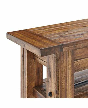 This is a bold, industrial collection that will make a statement in your living space. With a truss construction, bolts and metal bar accents you will love how these pieces take your decor to a new level. Knots, cracks and even rough-hewn edges showcase the wood’s original qualities.