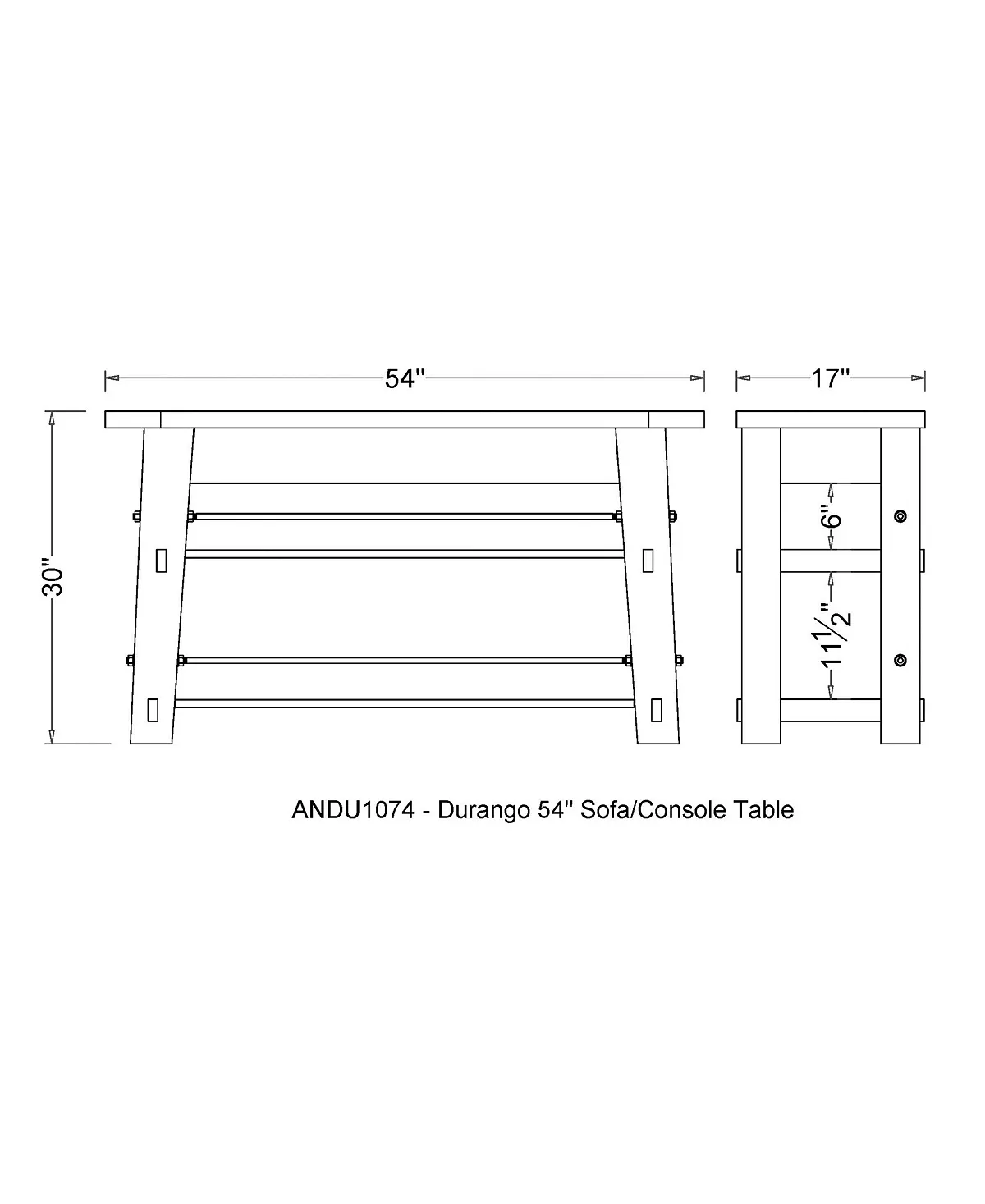 - Product dimensions – 54″ W x 17″ D x 30″ H