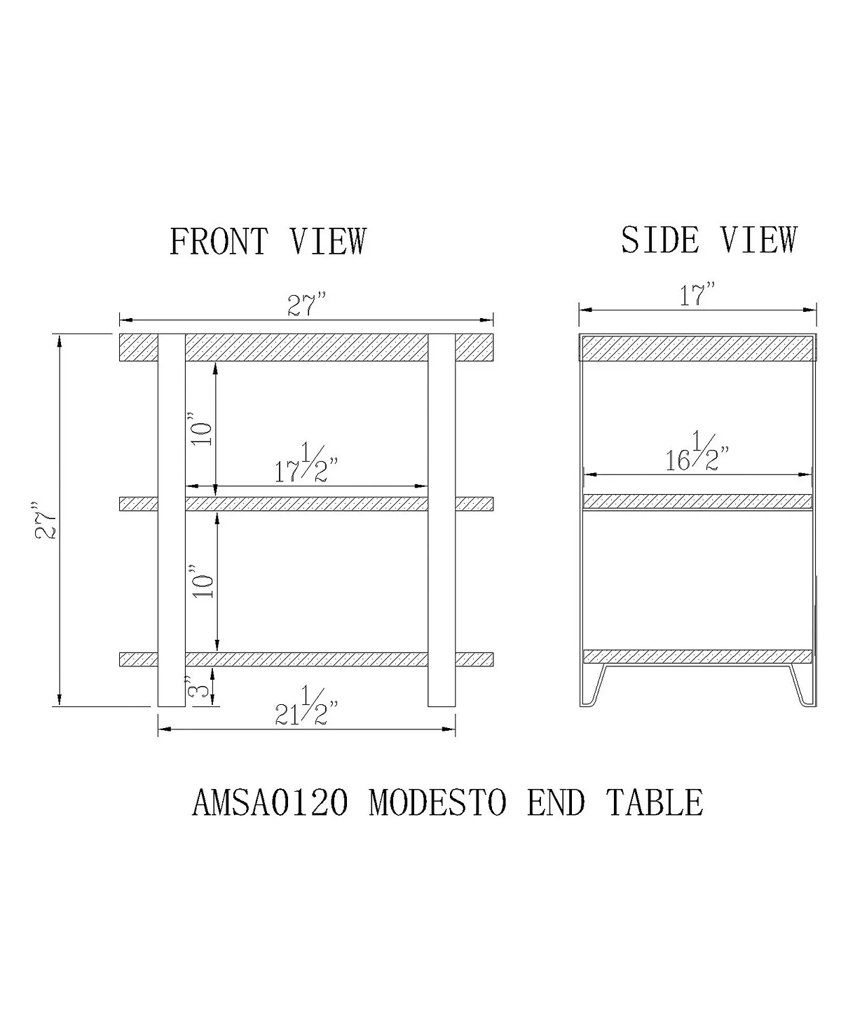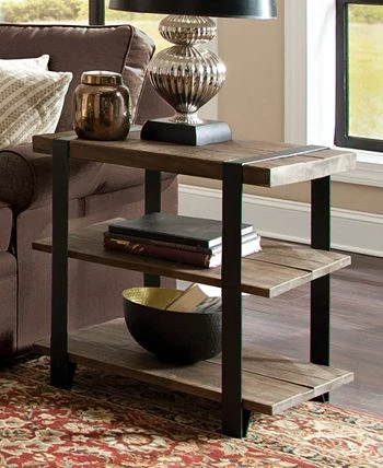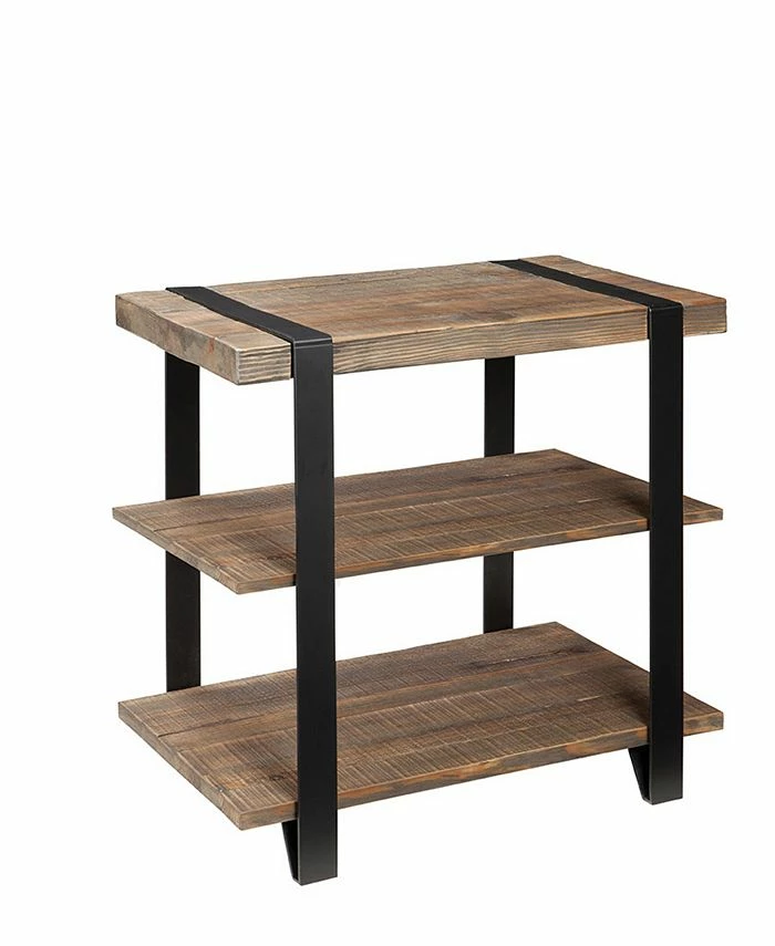 Modesto 2-tier end table will add warmth to any décor with reclaimed wood and wrapped metal strap over the top of the table. The rustic, natural finish and design provide an industrial element to your room.