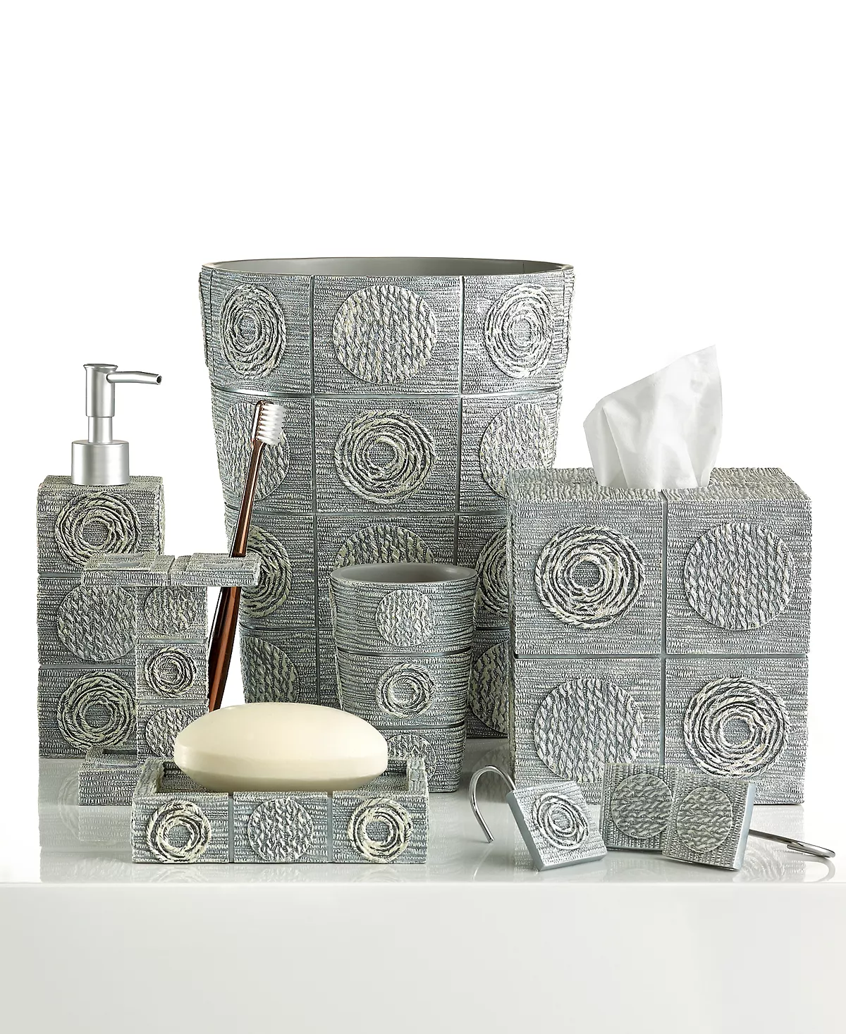 Cosmic chic. This Galaxy tissue holder from Avanti is totally out of this world, featuring intricate planetary shapes in shimmering metallic silver hues. Crafted of hand-painted resin.