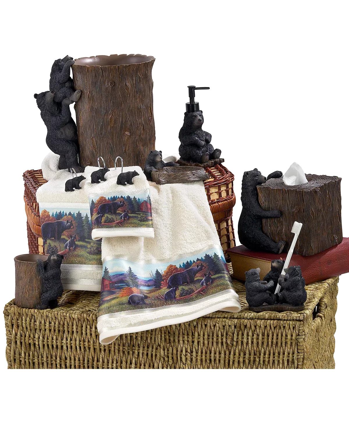 Crafted out of high quality resin depicting three bear cubs sitting in a circle, the Avanti Black Bear Lodge Toothbrush Holder makes a great addition to any bathroom, bringing the great outdoors in.
