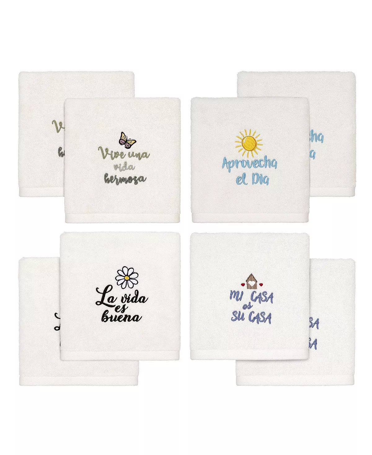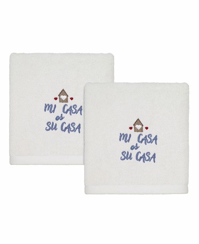The Avanti Mi Casa Es Su Casa my house is your house 2-pack of decorative hand towels features the saying embroidered in blue with a house with hearts above. Woven out of 2-ply ringspun cotton for superior softness and absorbency.