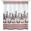 The Avanti Tis the Season bath rug features 3 red, white and green plaid Christmas trees on a white ground. Contrasting stars adorn the tops of the trees.