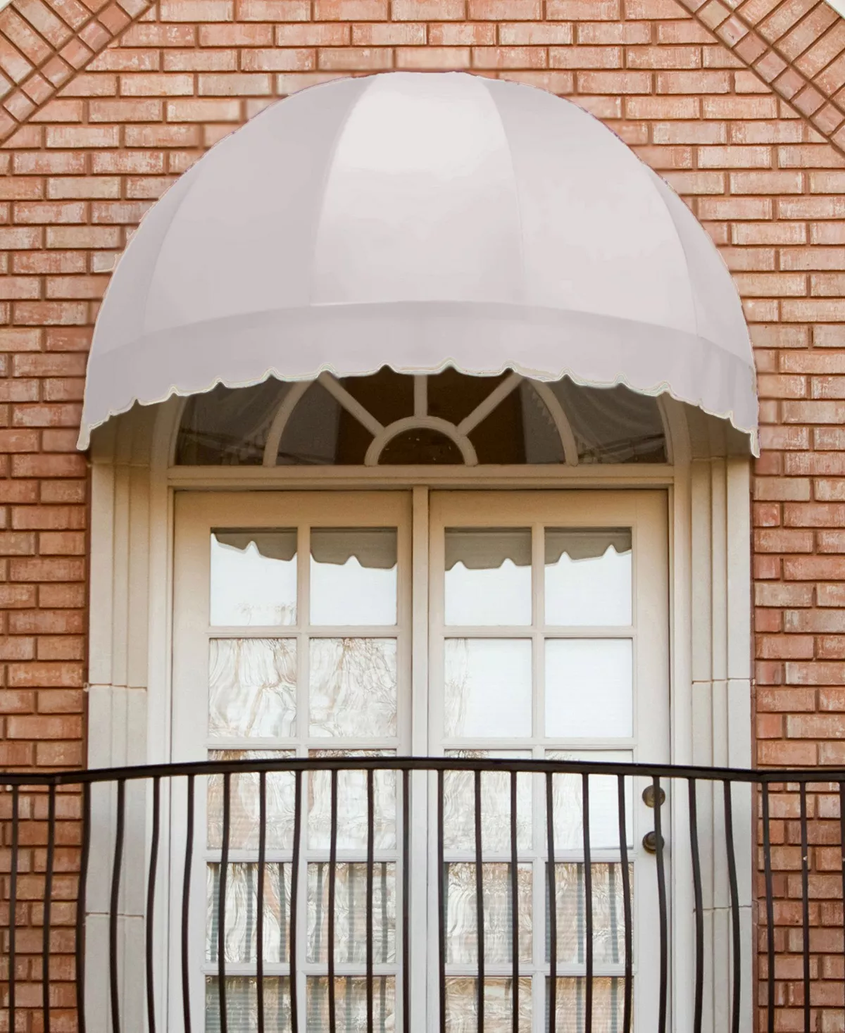 The BOSTONIAN heavy duty dome awning by Awntech is gorgeous and has been engineered to withstand heavy wind/snow loads. It is made in the USA from structural aluminum, stainless steel hardware UV/water resistant acrylic fabrics.