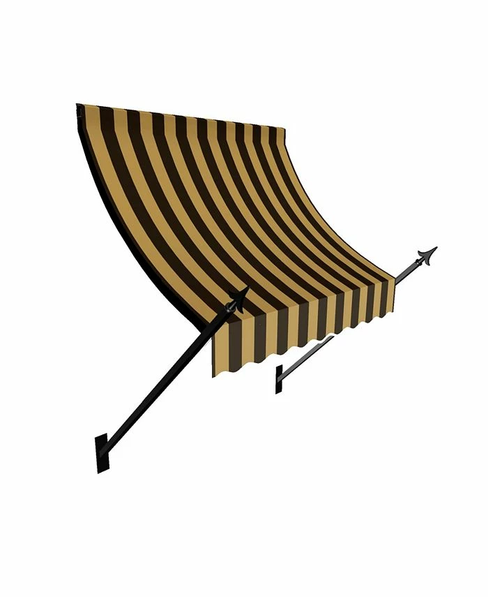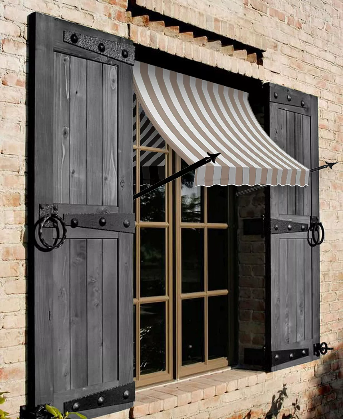 The NEW ORLEANS spear-arm awning by Awntech is a knock-out and was engineered to withstand heavy wind/snow loads. It is made in the USA from structural aluminum, stainless steel hardware UV/water resistant acrylic fabrics.