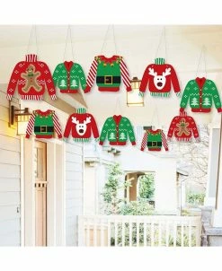 This set of 10 hanging porch & yard decorations is a festive way to decorate. Simply thread the included cording into the small holes at the top of each decoration and hang from trees, porches, or the ceiling. Each hanging decoration is printed on both sides so they will look great at any location.
