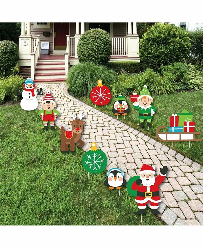- 10 Signs Include: 1 – Santa Claus, 1 – Snowman, 1 – Sleigh, 1 – Reindeer, 2 – Elves, 2 – Penguins, and 2 – Ornaments