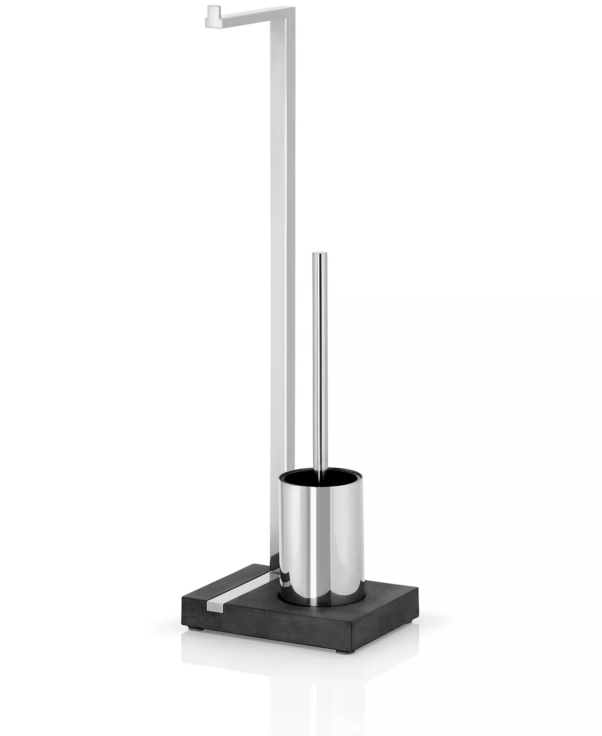 blomus Polished Toilet Butler – toilet paper holder and toilet brush organization station. Accommodates 1 roll of tissue paper as well as built in toilet brush with holder. Base is made of polystone which provides both a stylish look and support.