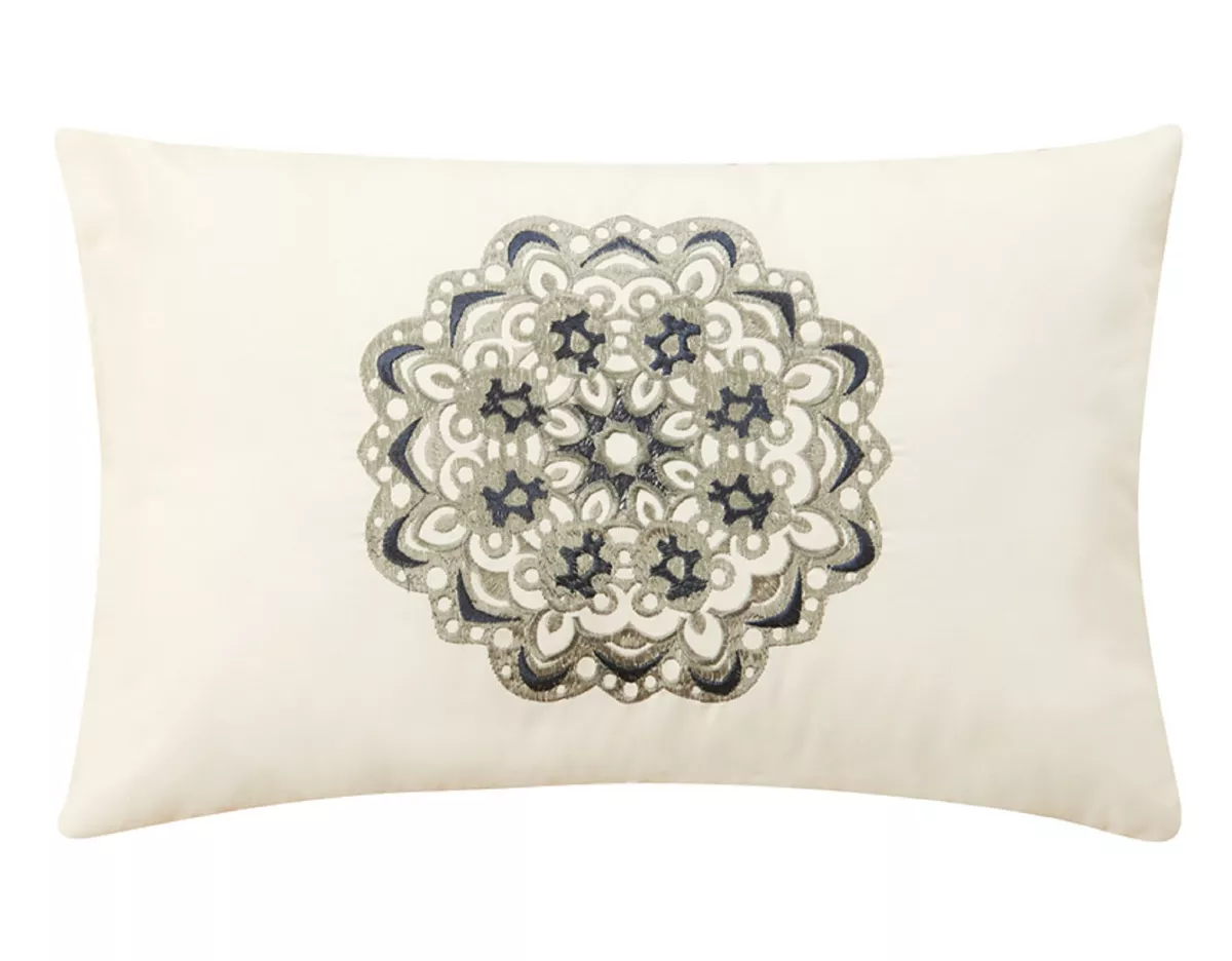 A modern quilt set with everything you need to give your bedroom a bold, fresh look. The quilt features a contemporary Bohemian inspired large-scale medallion paisley panel print on the face with a minimalist, solid color design on the reverse. Design coordinated super-soft microfiber sheets, a pillowcase, a reversible pillow sham and an embroidered decorative pillow are included to complete the look.