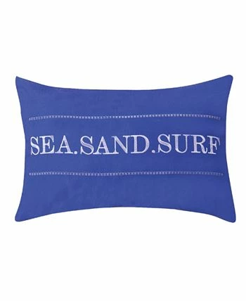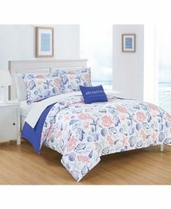 A modern duvet cover set with everything you need to give your bedroom a bold, fresh look. The duvet cover features a printed “Sea, Sand, Surf” theme on the face featuring starfish, conches and shells on a sandy white field with a solid blue backing on the reverse. Design coordinated super-soft microfiber sheets, pillowcases, reversible pillow shams and an embroidered “Sea.Sand.Surf” decorative pillow are included to complete the look.