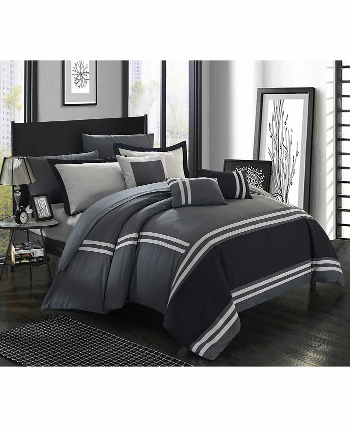 Turn any bedroom into a luxurious experience with the Chic Home Zarah banded comforter set. This super soft microfiber fabric pieced with color blocking patchwork stripes will add a touch of elegance, color and simplicity to your bedroom decor. This comforter set comes with a matching sheet set and decorative pillows to complete the look.