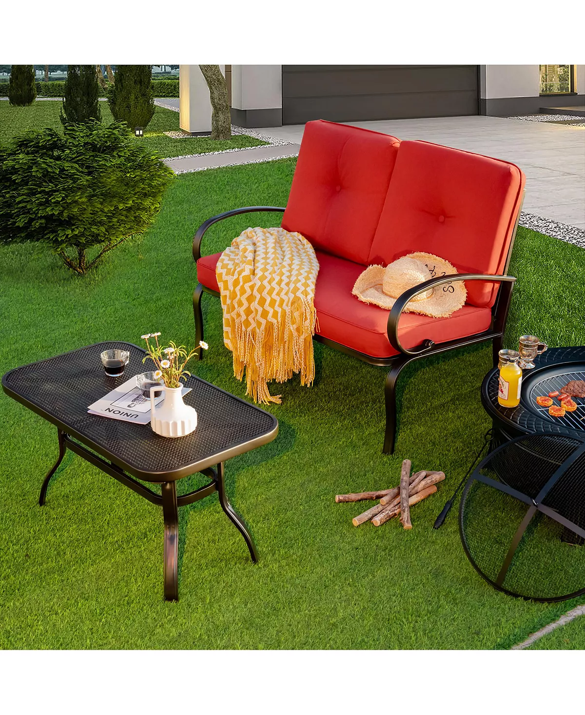 This Is Our Outdoor Furniture Set, Including A Loveseat With Cushions And One Coffee Table. The 2pcs Love Seat and Table Seating Set Provides You With Truly Exceptional Outdoor Seating.
