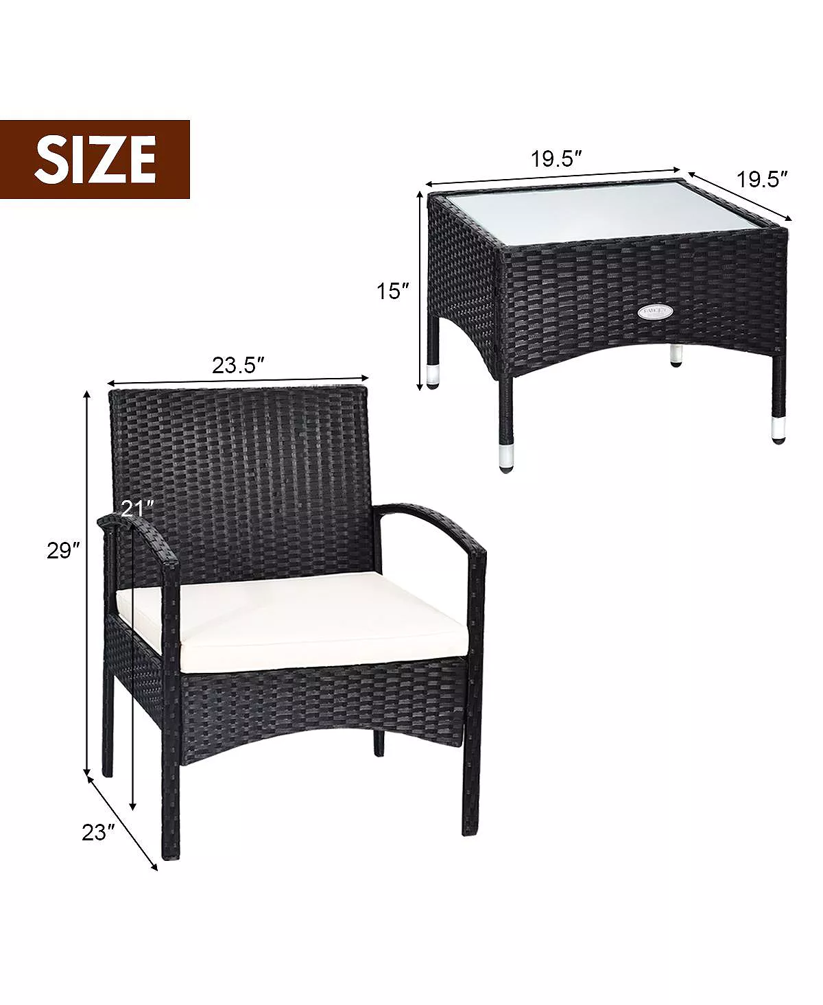 - Package includes: 1X 3 PCS patio wicker rattan furniture set, 1X Instruction. Warranty Time: 3-Month.