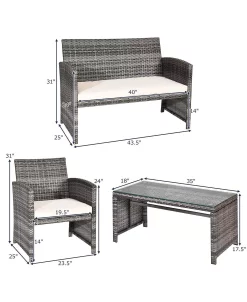 - Package Include: 1 x Loveseat, 2 x Single Chairs, 1 x Coffee Table, 3 x Cushions, 1 x Instruction. Warranty Time: 3-Month.