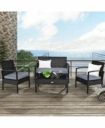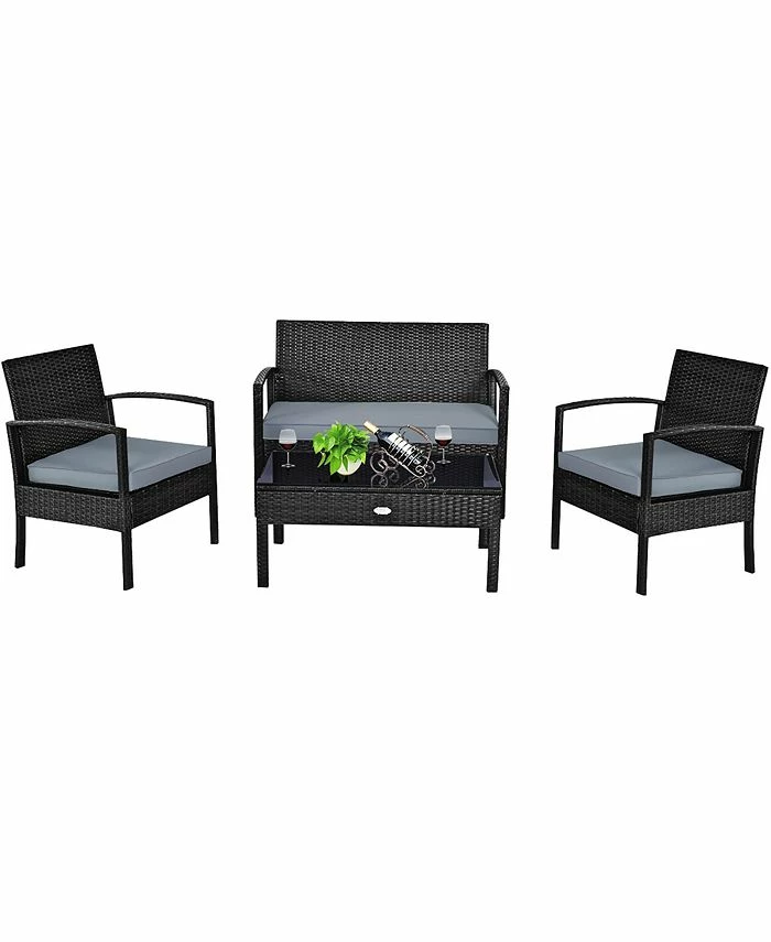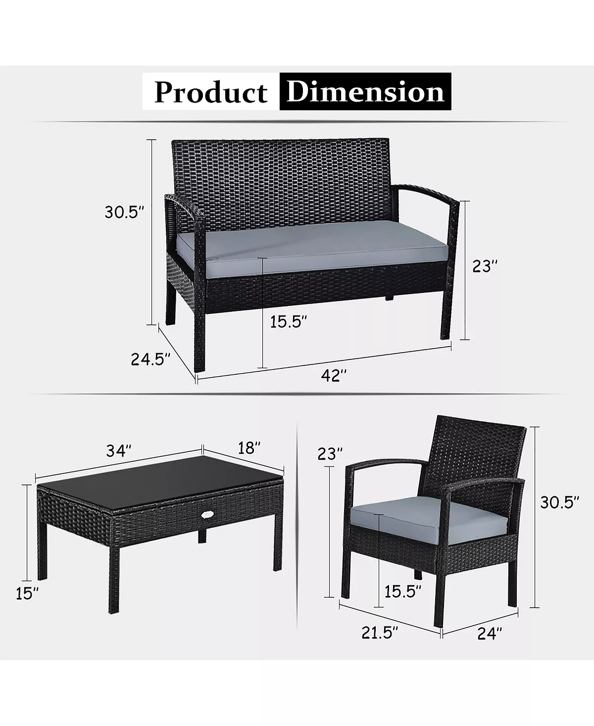 - Package includes: 1×Coffe Table, 1×Loveseat, 2×Single Chair, 3xCushion, 1xInstructions. Warranty Time: 3-Month.