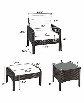 - Size of Single sofa:28″x26.5″x29.5″(LXWXH) ,Size of ottoman:26.5″x20″x16″(LXWXH) ,Size of coffee table:18″x18″x17″(LXWXH)