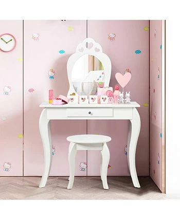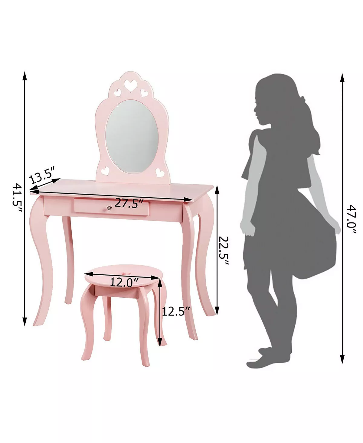 Our vanity set is a perfect present for little girl. Made of density board and pine wood, the whole set is very stable and can be used for long time.