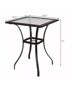 Our outdoor rattan wicker bar table with a glass top Is Looks Stylish And Beautiful For Its Modern Design. It Is Lightweight And Space Saving For Easy Movement, Constructed Of Solid Metal Pipe And excellent Workmanship, Perfect For Indoor And Outdoor Use.