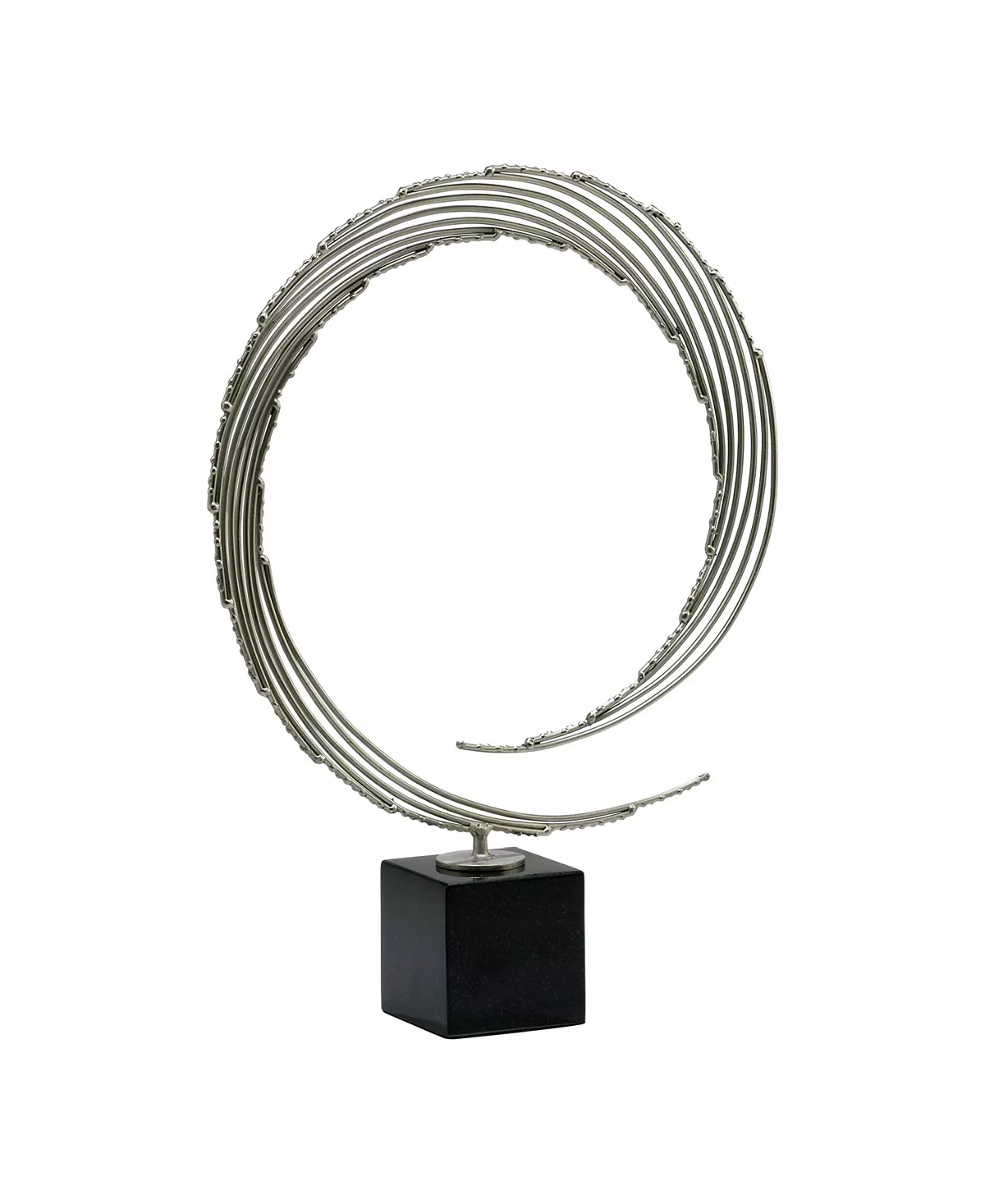 Explore artistic depth with the geometric silhouette of this wave-inspired iron sculpture in a nickel finish. Thin, protruding details emerge from a black marble base, epitomizing refined contemporary structure.