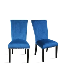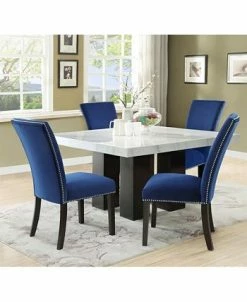 Elegant dining with a modern twist, the Camila Square Dining Table offers a beautiful white marble top with four wide legs finished in espresso to support the top and add to the contemporary design. The chairs feature sturdy, solid wood construction and are accented by stylish silver nailhead trim and feature a curved back for comfort and support.