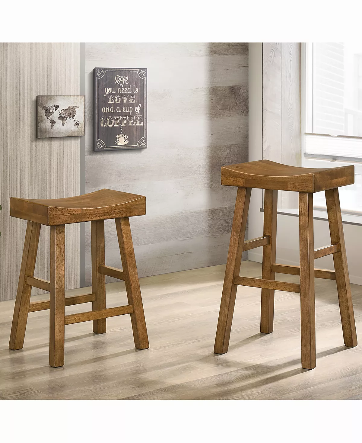 Pair these charming saddle style barstools with a kitchen island or a bar and create a place to gather. The stools crafted with environmentally-friendly hard rubber wood and come in an attractive finish.