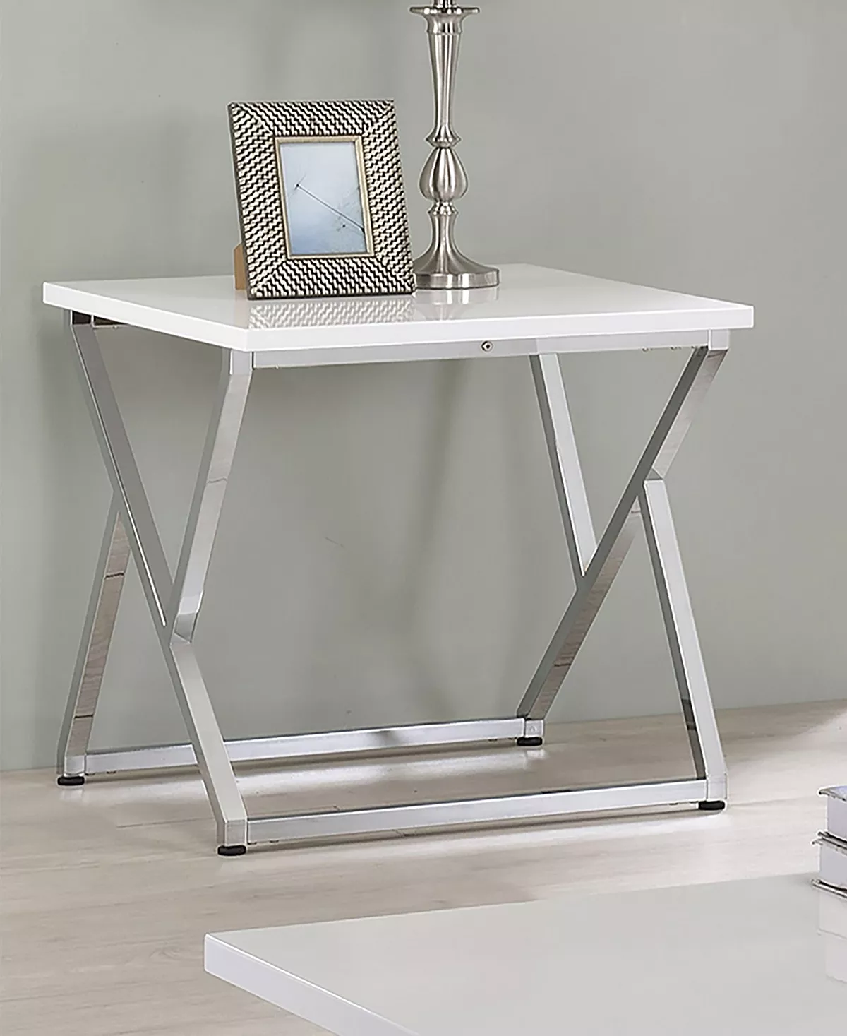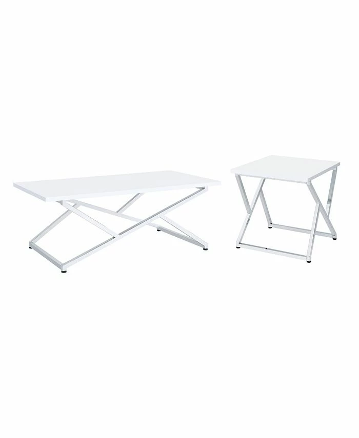 Redefining functional minimalism, this two-piece coffee table set with one coffee and one end table is perfect for a sleek sitting area. It delivers angular bases and a high gloss white finish that adds just the right hint of warmth.