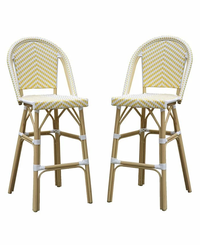 Create the perfect place to settle down for an afternoon enjoying the great outdoors with this set of two transitional bar chairs. Natural and white finishes are complemented with color that adds a fun, personalized touch.