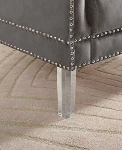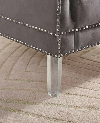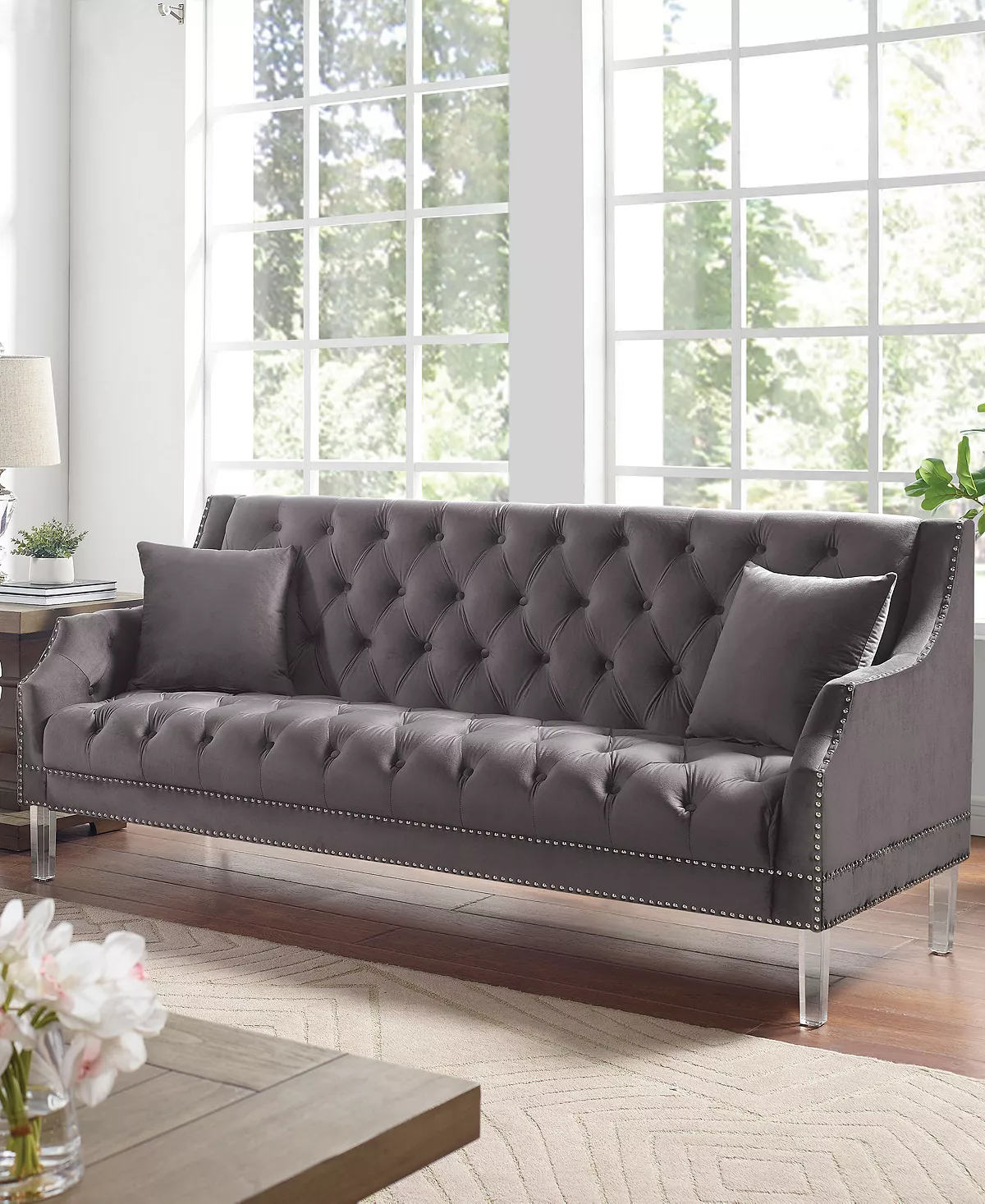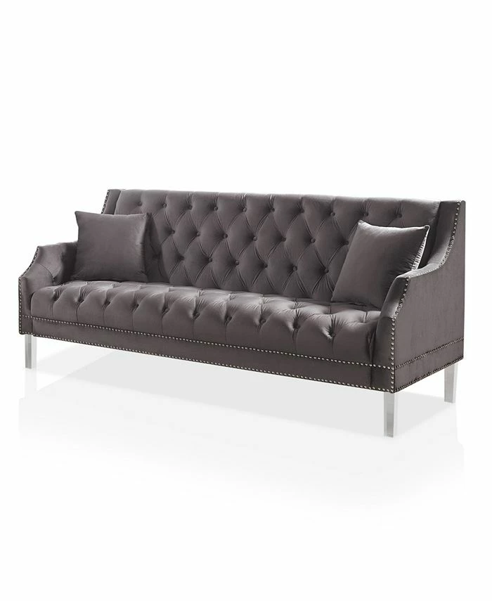 Instantly amplify the glam elegance of your living space with the elevated look and feel of this transitional sofa. Soft gray flannelette upholstery is complete with diamond button tufting while shaped arms and nail head trim capture attention.