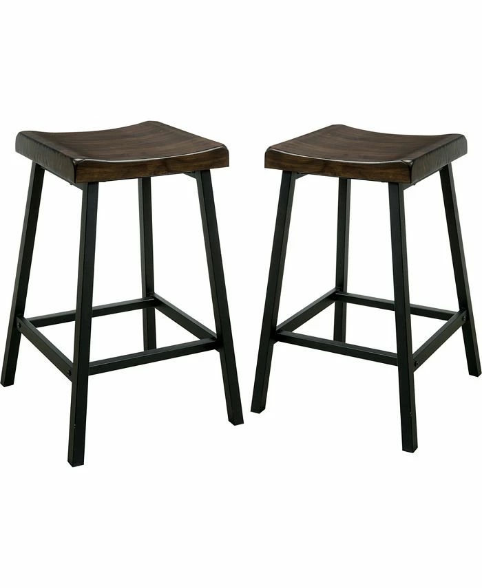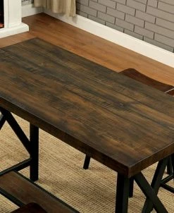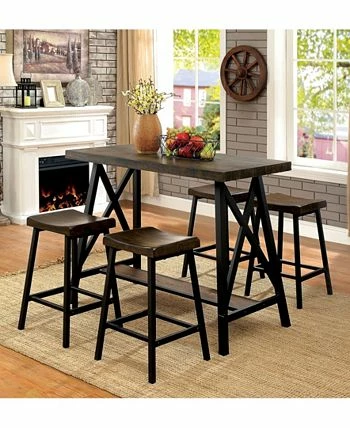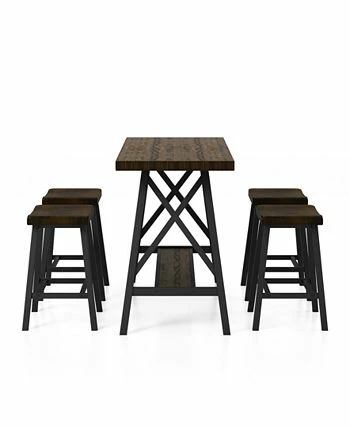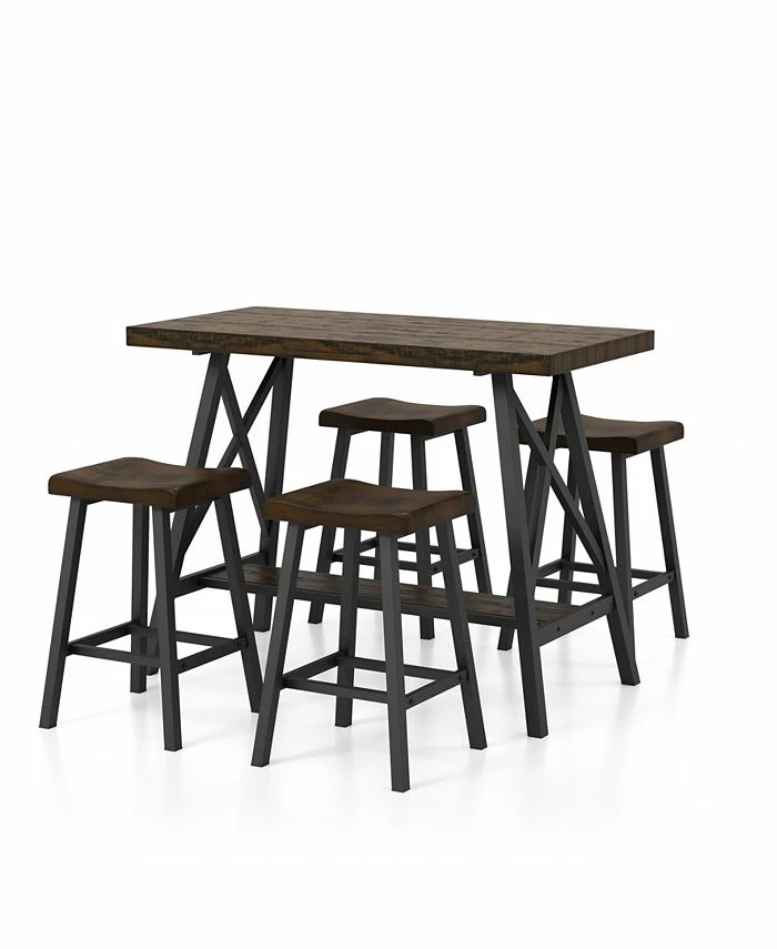 This sleek counter-height five-piece dining set brings the perfect blend of style and comfort. The tall table features a wide tabletop with X-shaped metal sides, and each stool features a gently curved seat supported on angled legs, making this bold industrial set a favorite for you and your guests.