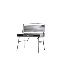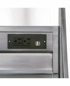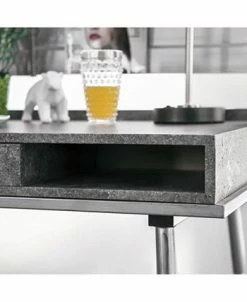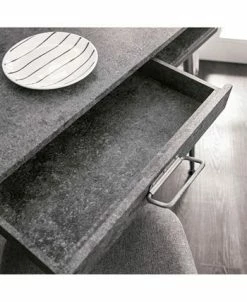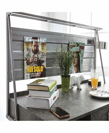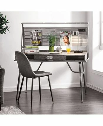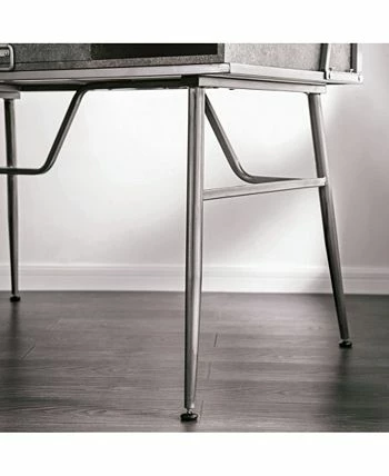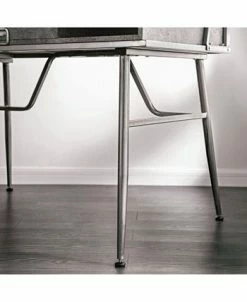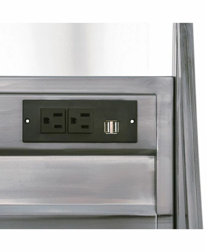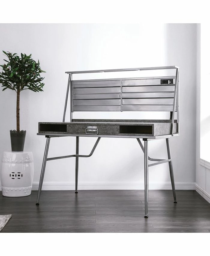 Boost the industrial flair in any bedroom or home office with the Jairo Silver Metal USB Outlet Included Desk. This desk is designed with two side cut-out shelves and a center drawer with a drop-down handle. This unique piece also has a back panel with a USB and power outlet included on the side.