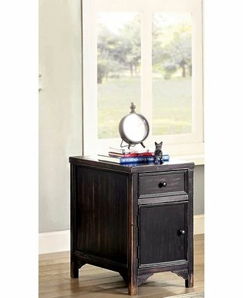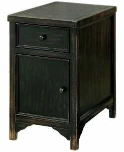 The Falima side table brings Rustic style to your home with its Antique Black finish and weathered tones. The simplistic and open bottom design creates an inviting atmosphere. Use the top for a light workspace and accent with your favorite coffee table books. Display décor on the open shelf and store items for convenient dual-side access. Complete the set with matching end, coffee, and sofa table sold separately.