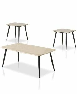 This three-piece mid-century modern table set issues one rectangular coffee table and two square end tables. The pencil polished edge of the tables lends to a refined look that marries perfectly with the round taper legs.