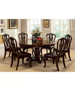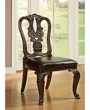 Lavish floral decorations and a sleek leatherette upholstery make the Ramsaran Side Chair a timeless statement piece. The curvy back rest elevates your look with elegant floral carvings while boasting matching sculpted cabriole legs for a polished look.