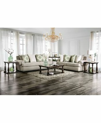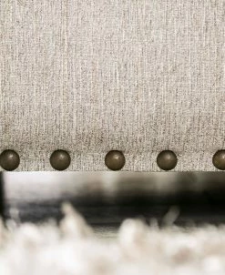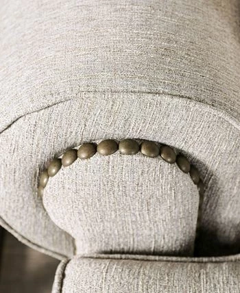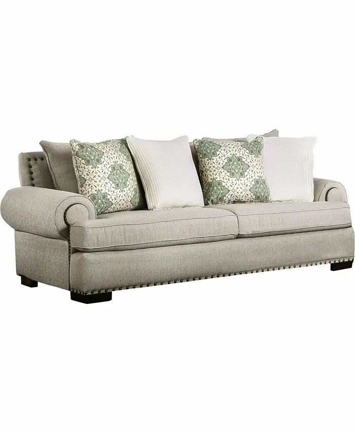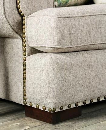Dramatic, oversized rolled arms, modern bracket feet and gold-toned nailhead trim are standout features of this plush, sophisticated sofa. Upholstered in a crisp, woven linen-like damask brown fabric finish, the sofa delivers stylish lines and top comfort.