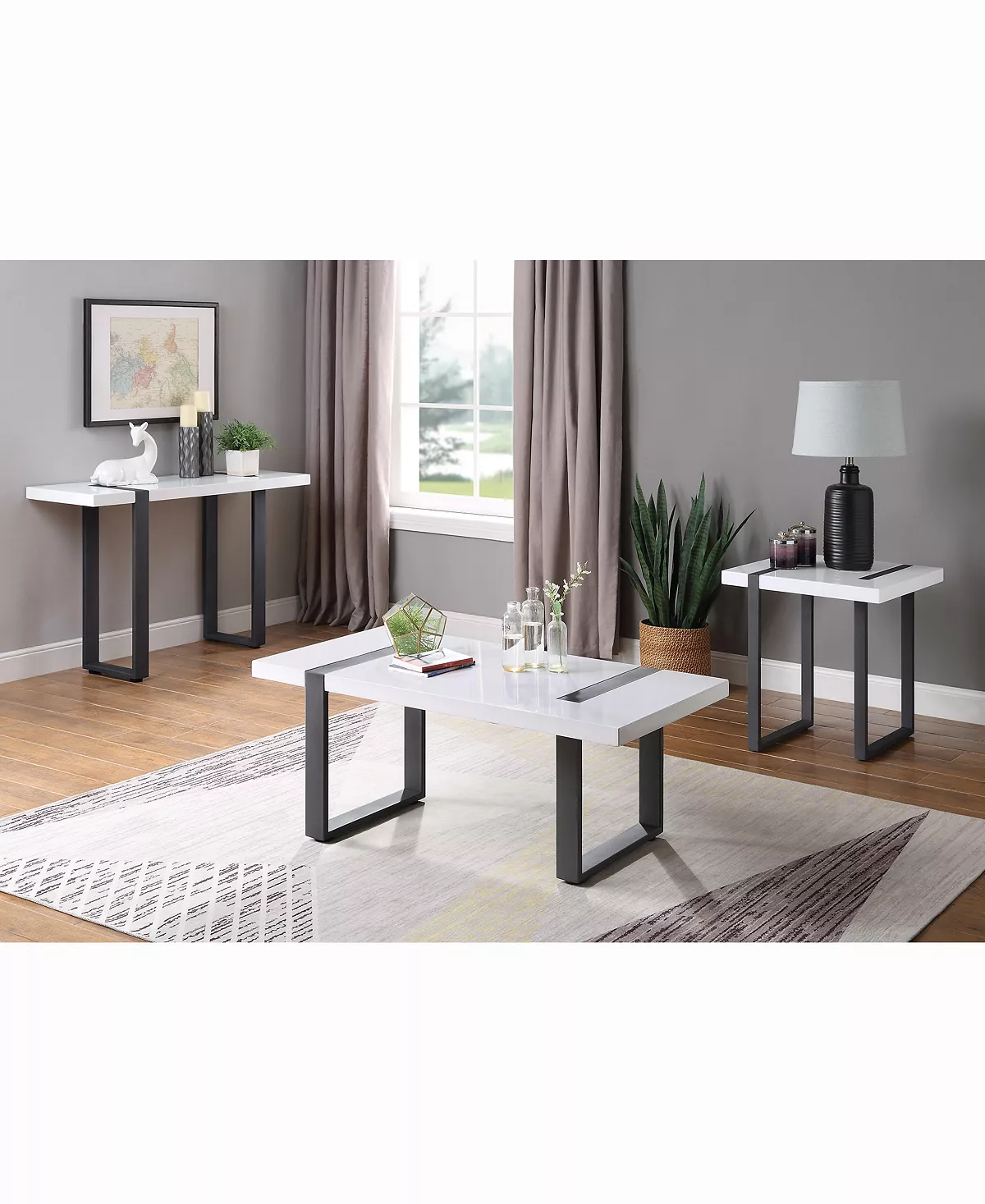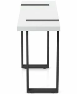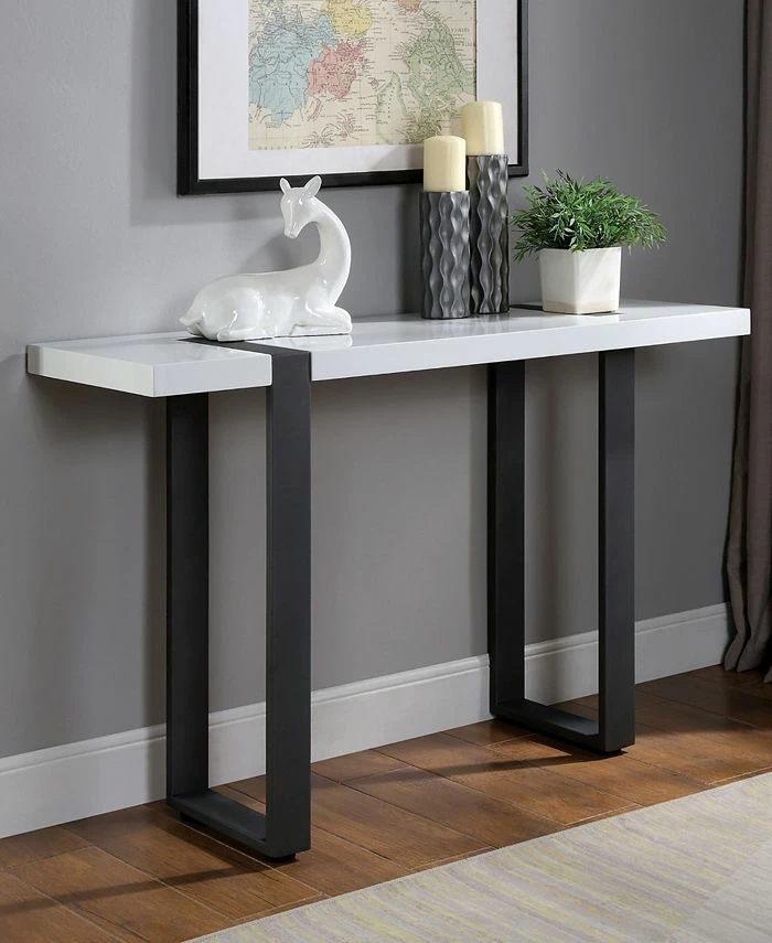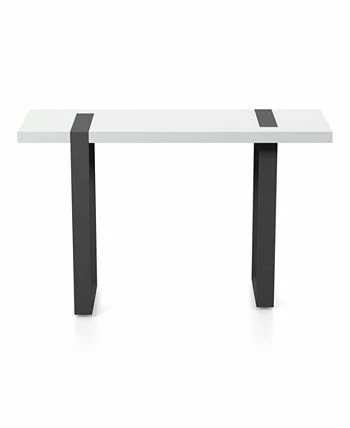 With a contrasting black and white finish, this contemporary console table lends a sleek minimalist style. With a spacious rectangular tabletop, two square-shaped flat legs support this piece and create a visually intriguing design.