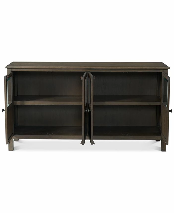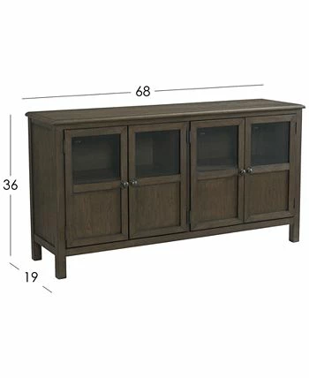 Bring your dining space into the modern world with a dash of casual and a dash of classic through this functional buffet. Its framed traditional lines are complemented by crisp glass accents while a grainy surface is accentuated by a rich mocha finish for a cosmopolitan finesse.