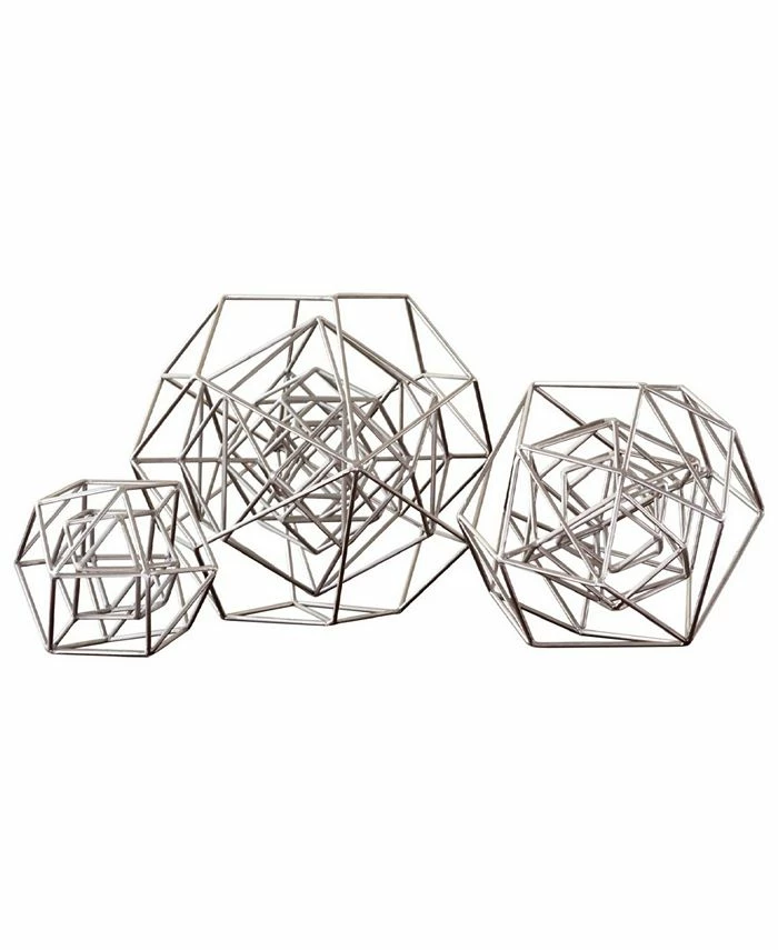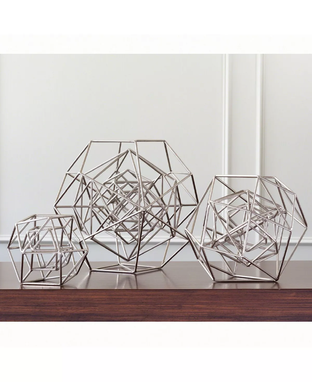 Science and nature inspire us daily. And we have looked to the scientific muses once again here with our geo sculptures. Taken from a drawing found in a scientific journal, the iron sculptures give a very angled and molecular feel. The cool nickel finish shines with ever-evolving possibilities.