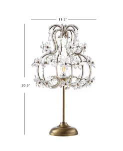 Add Jazz Age glamor to your vanity, bedroom, or even a dining room console with our vintage-inspired girandole, or chandelier lamp. Sparkling crystal flowers and beads adorn a caged lampshade; finished in rich gold.