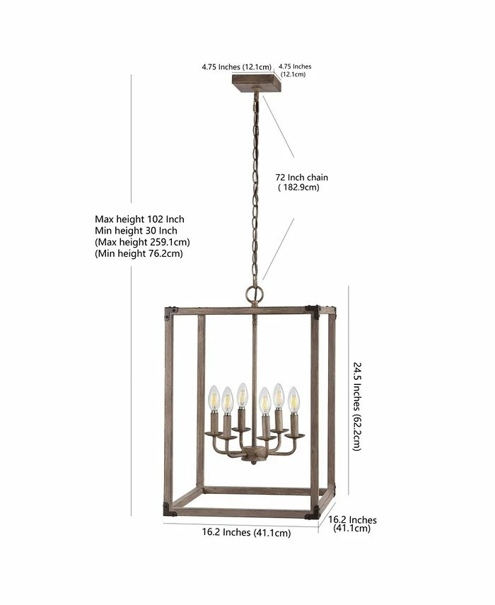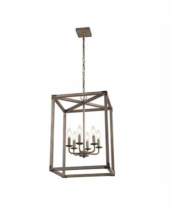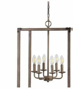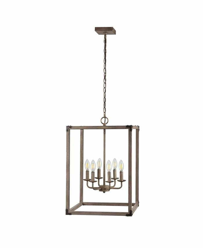 Our square open pendant is ideal for your modern farmhouse, rustic kitchen or industrial interior design. Features six Edison-style LED bulbs inside a barn wood-finished frame, accented with oil rubbed bronze. This rustic pendant is perfect for the kitchen, bedroom, entry or dining room.