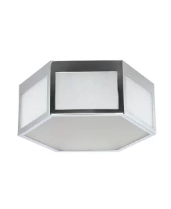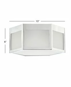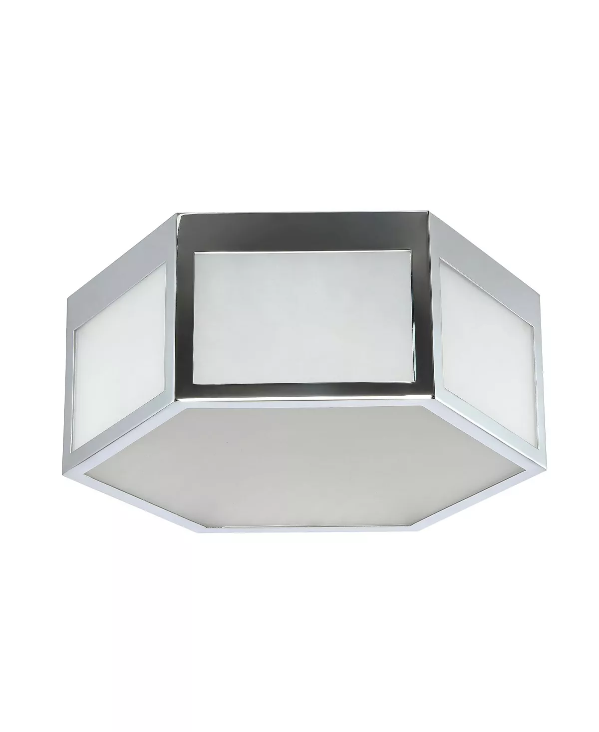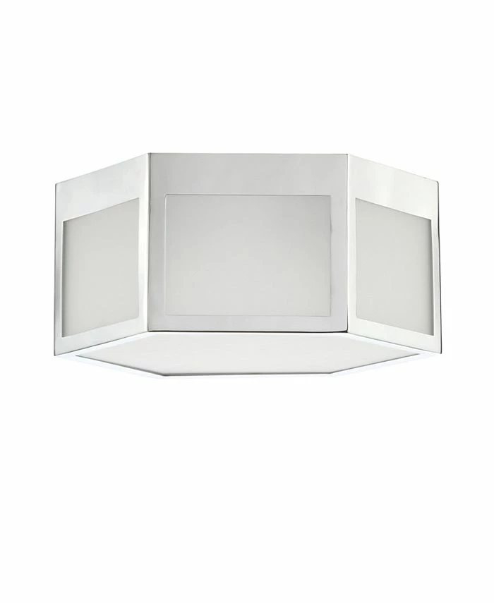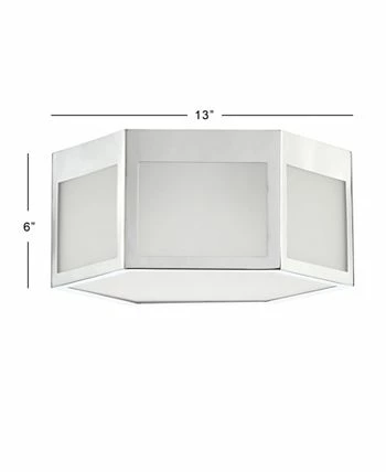 Update your home with our minimalist take on a hexagonal, flush-mounted lantern. Two included LED bulbs provide plenty of bright light, softened by frosted glass panels.