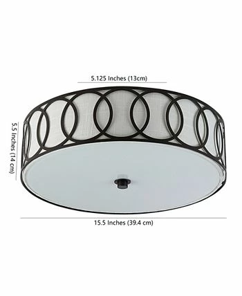 With an open circle frame design, this flush mount ceiling light in a polished oil rubbed bronze finish offers added style and beauty for your living space. The simplicity of a linen shade is accented by the fretwork of overlapping circles cut from metal.