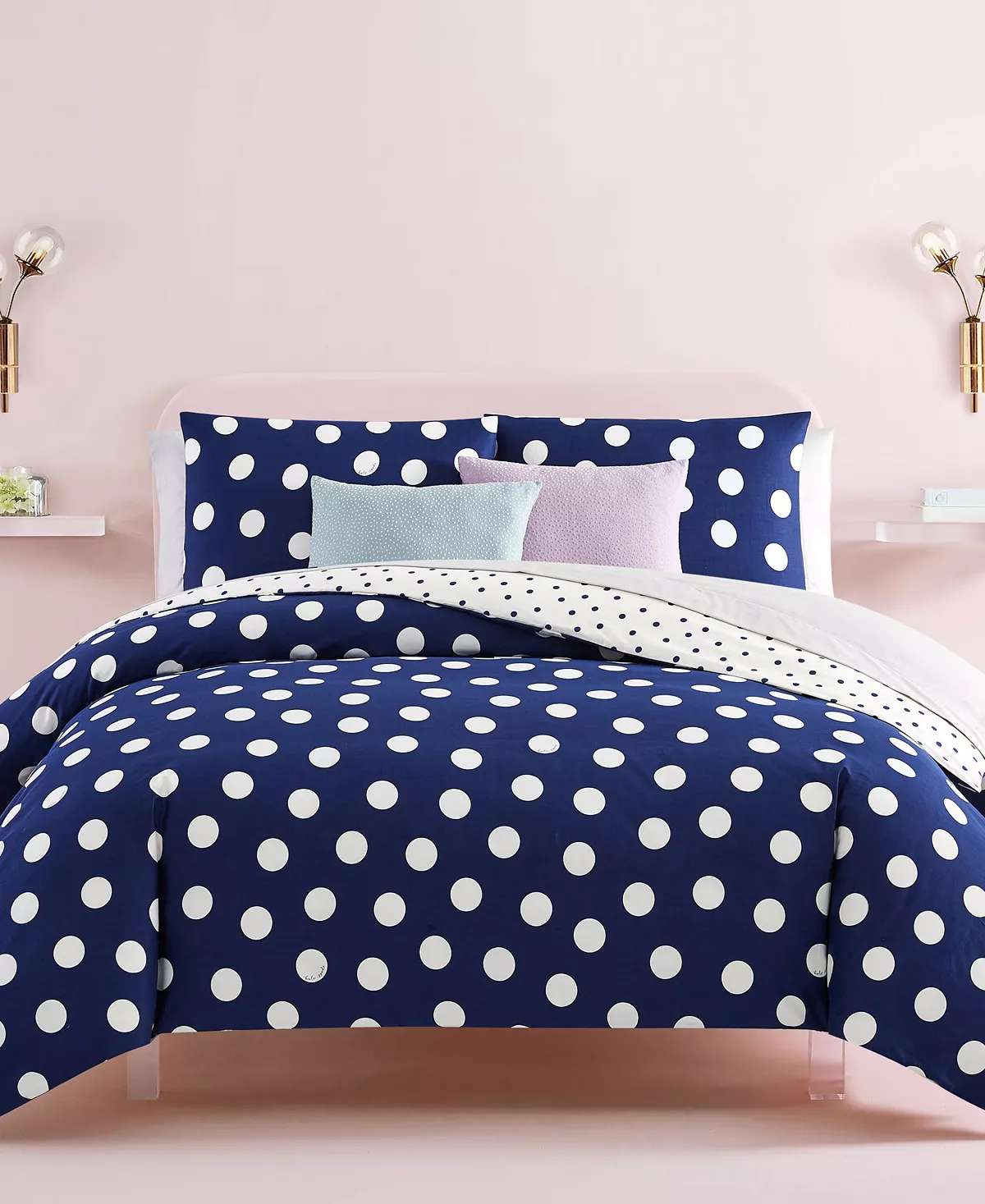 An ultra-soft and luxurious polka dots mini comforter set by kate spade new york will have you counting its fun dots to reach that tranquil state in no time. Because every bed should be a destination for sweet dreams.