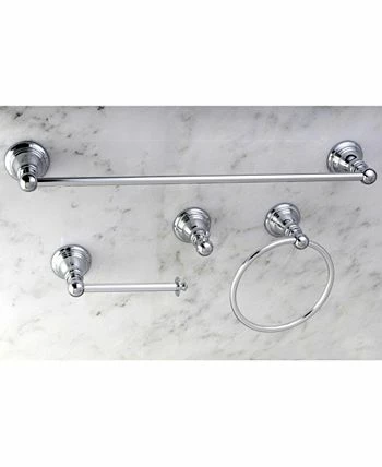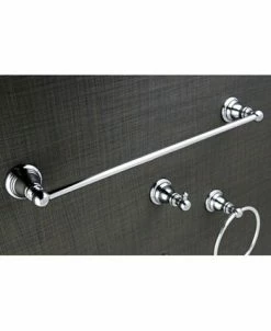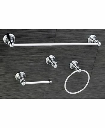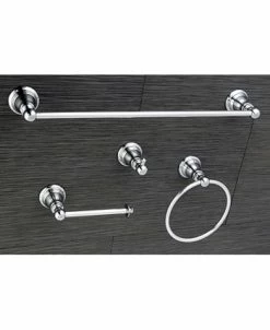 This all inclusive set of bathroom accessories features intricate detailing for a luxurious and astonishing style. One towel bar, towel ring, robe hook, and a toilet paper holder are included for all of your hanging storage needs.