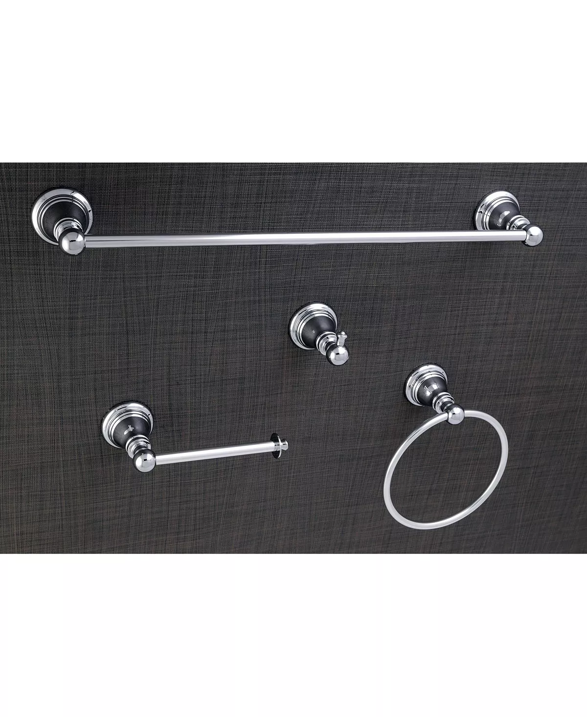 - Set Includes 18-inch Towel Bar, Towel Ring, Robe Hook and Toilet Paper Holder